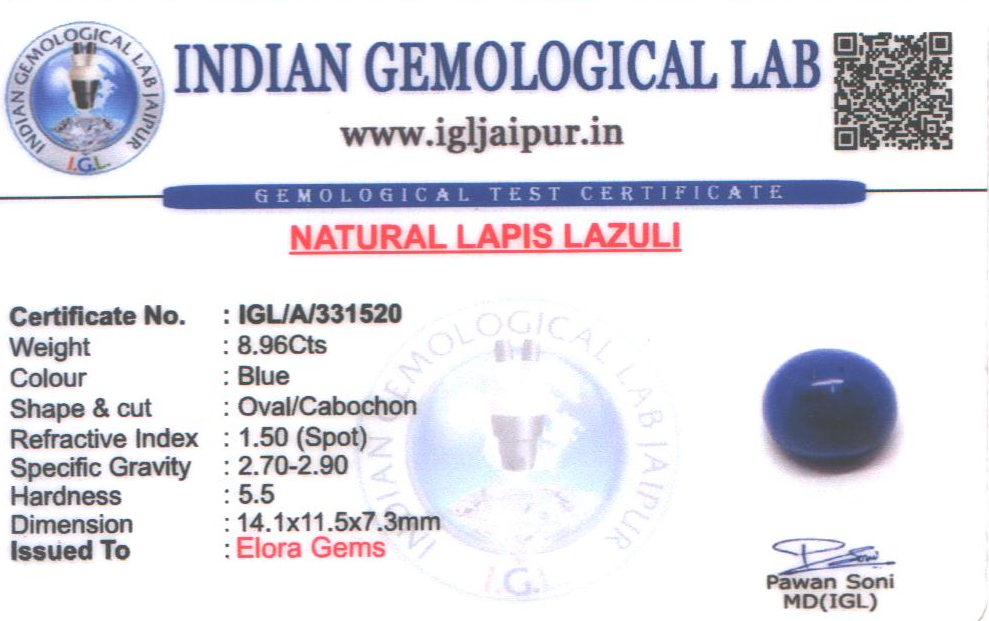 Natural Lapis Lazuli weighing 8.96 carats In Oval