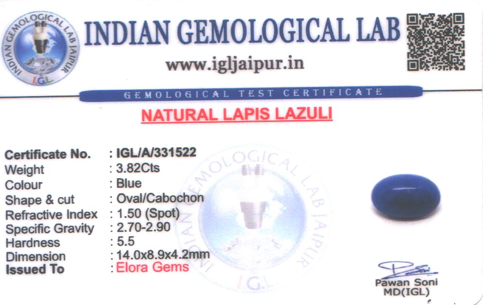 Natural Lapis Lazuli weighing 3.82 carats In Oval