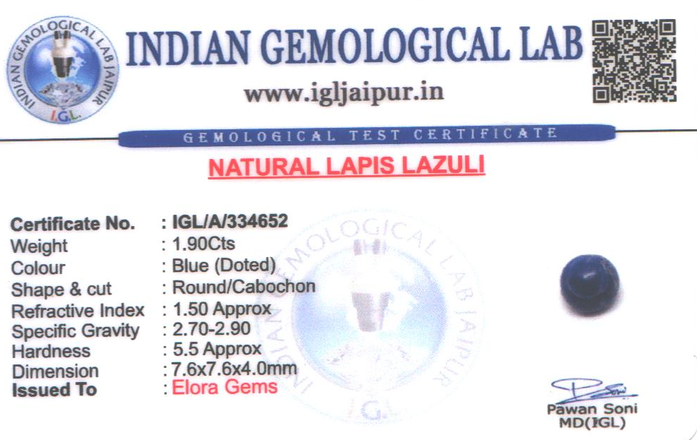 Natural Lapis Lazuli weighing 1.9 carats In Round