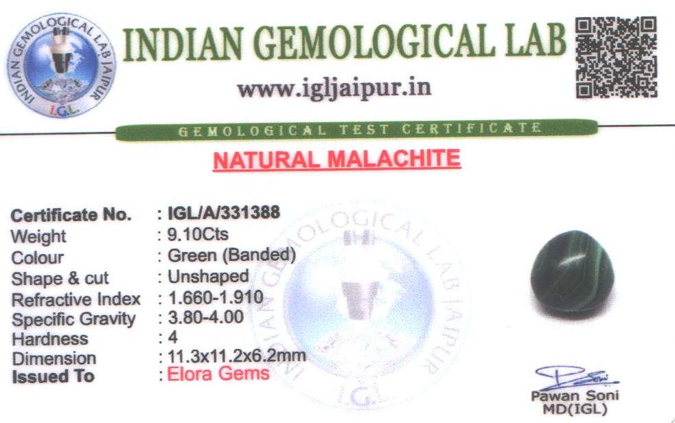 Natural Malachite weighing 9.1 carats
