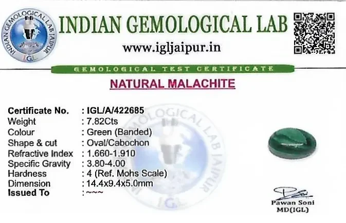 Malachite 14x9 MM 7.82 carats