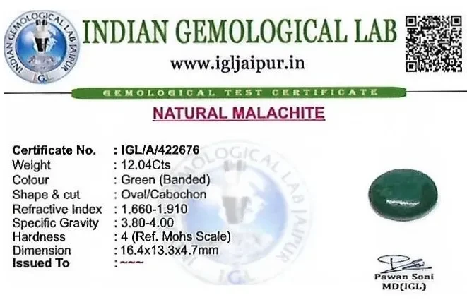 Natural Malachite weighing 12.04 carats In Oval