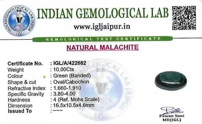 Natural Malachite weighing 10 carats In Oval