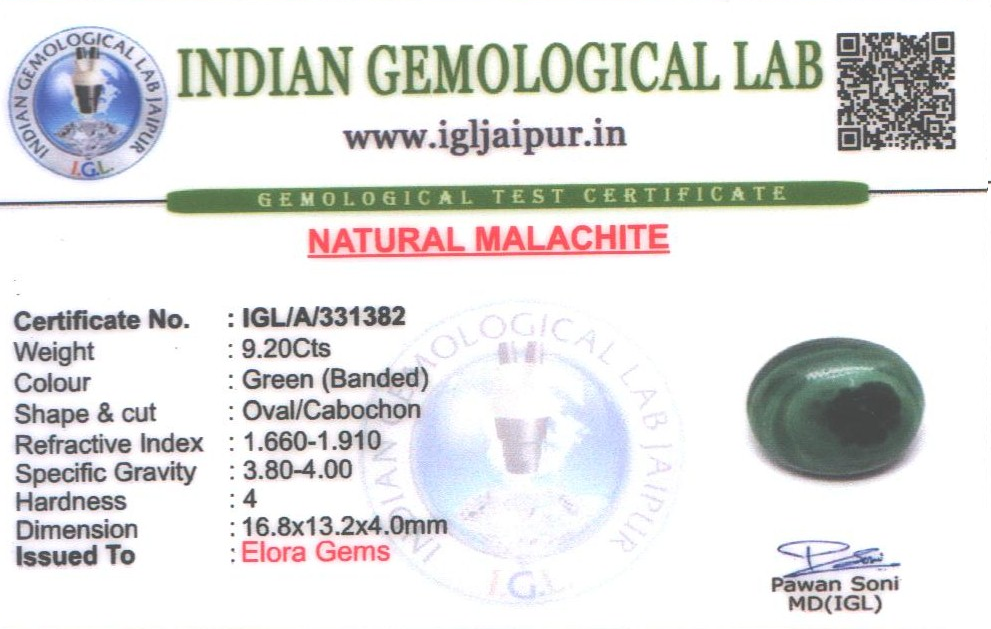 Natural Malachite weighing 9.2 carats In Oval