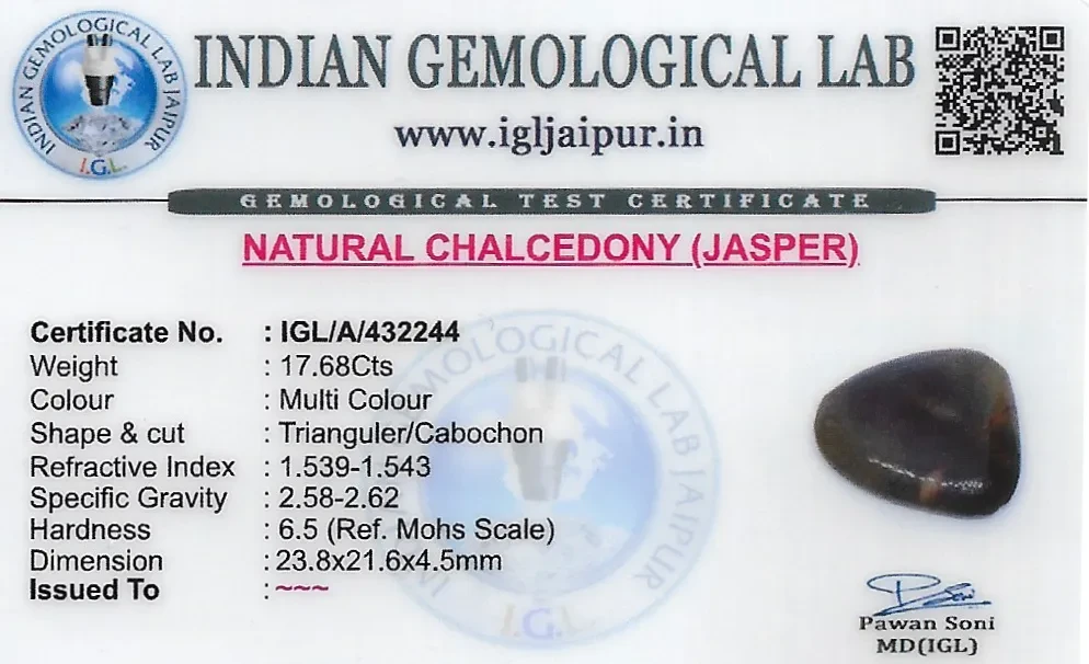 Natural Mookite Jasper weighing 17.68 carats In Triangular