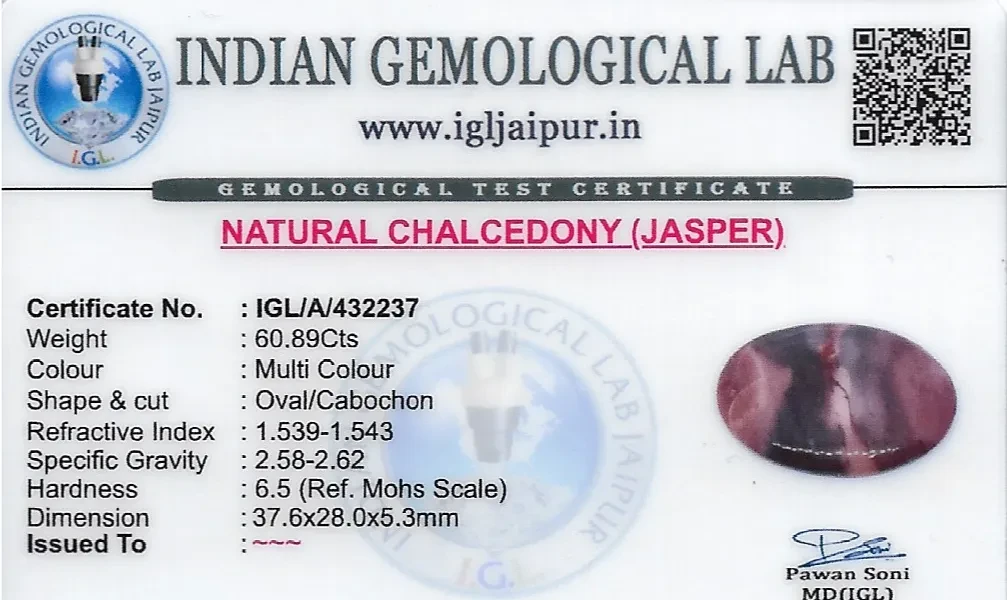 Natural Mookite Jasper weighing 60.89 carats In Oval