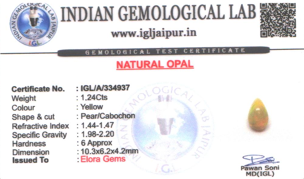 Natural Opal weighing 1.24 carats In Pear from Ethiopia