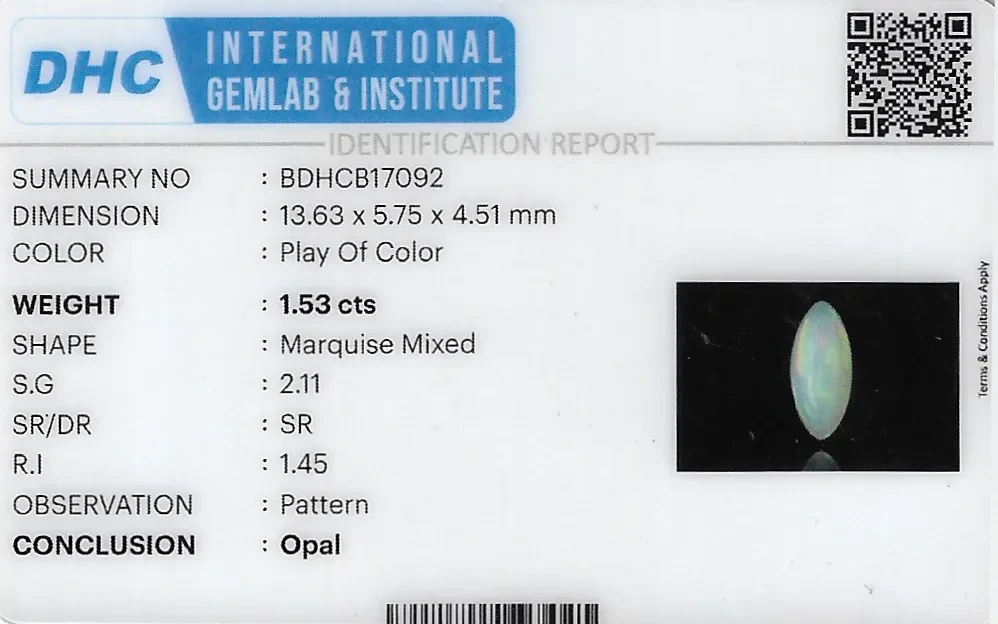 Natural Opal weighing 1.53 carats In Marquise from Ethiopia