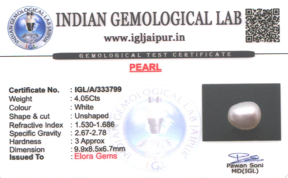 Natural Pearl (Muthu) weighing 4.05 carats In Unshaped