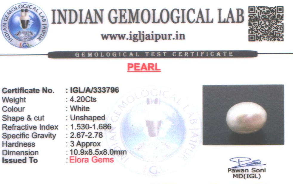 Pearl (Muthu) 11x9 MM 4.2 carats