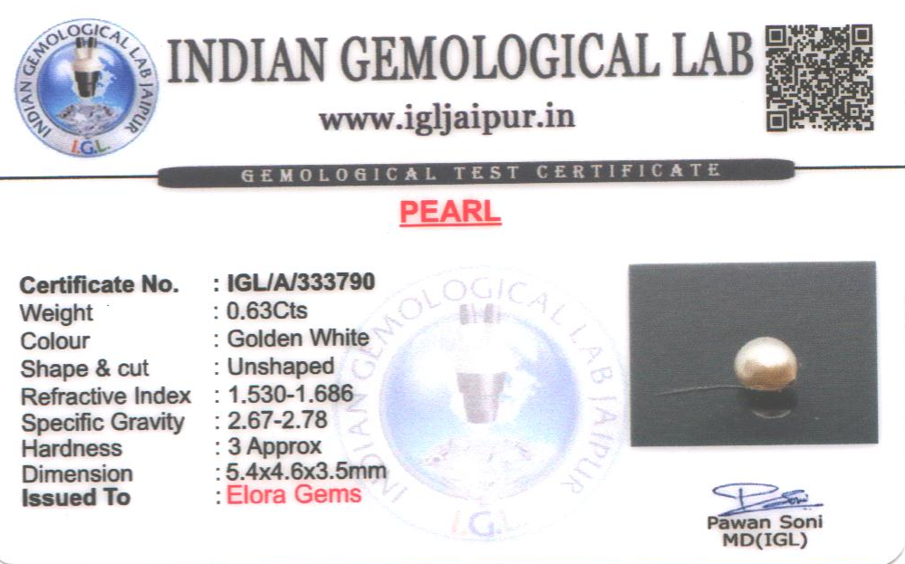 Natural Pearl (Muthu) weighing 0.63 carats In Unshaped