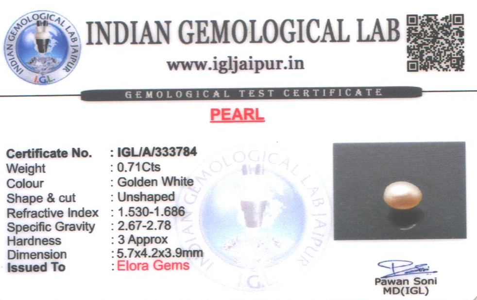 Natural Pearl (Muthu) weighing 0.71 carats In Unshaped