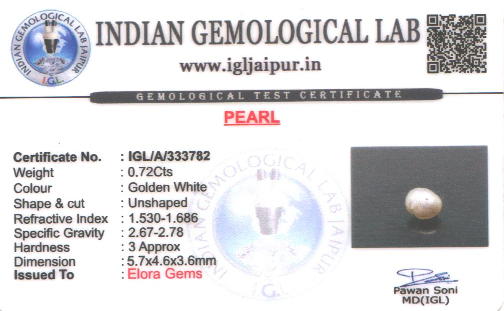 Natural Pearl (Muthu) weighing 0.72 carats In Unshaped