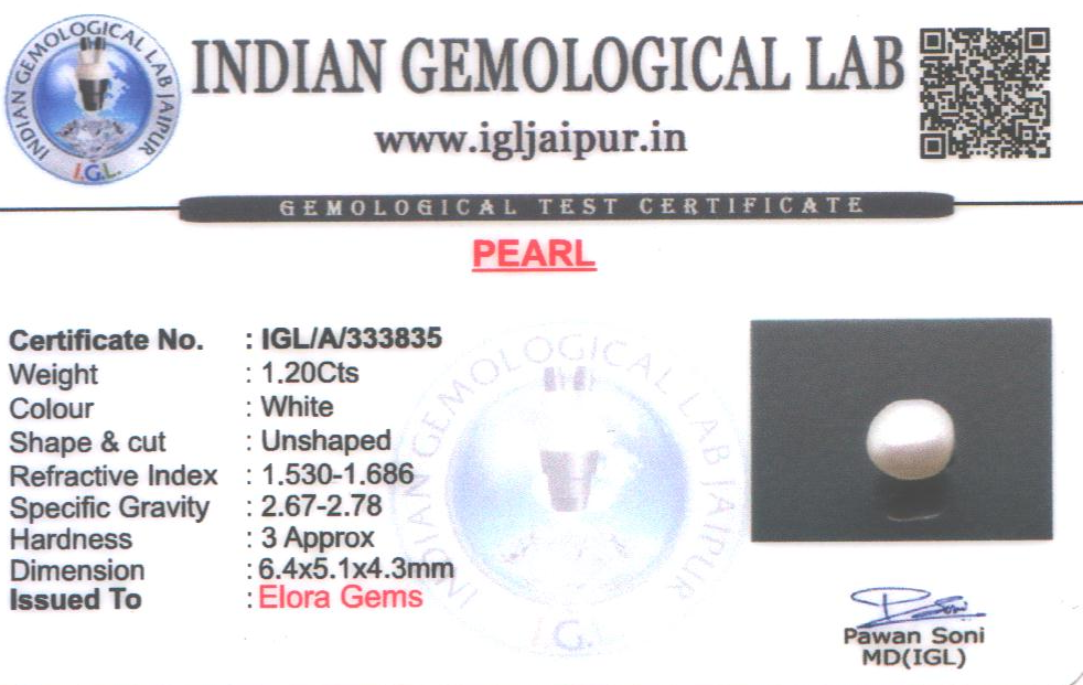 Natural Pearl (Muthu) weighing 1.2 carats In Unshaped