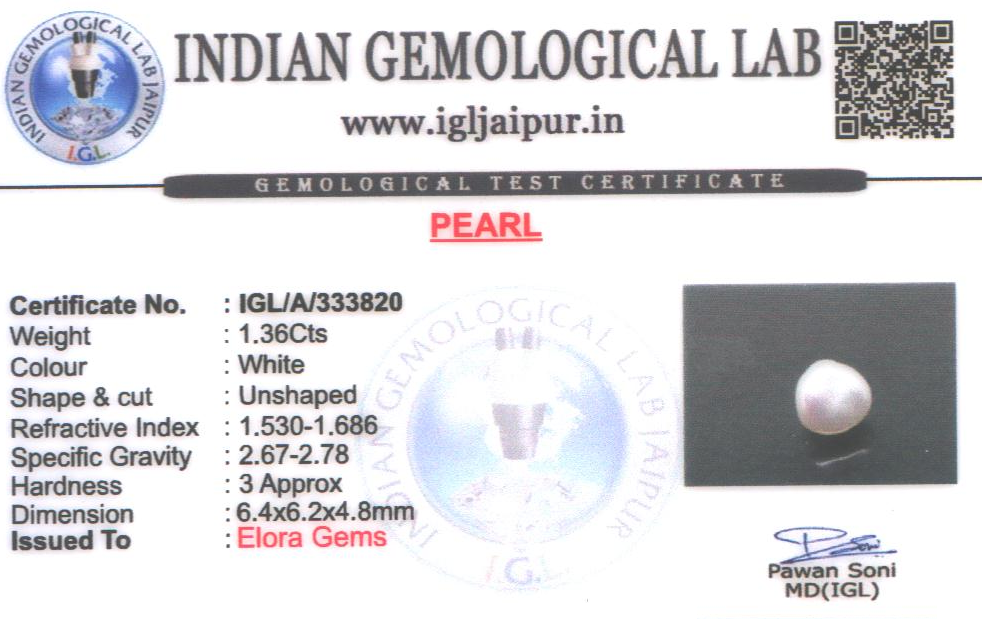 Natural Pearl (Muthu) weighing 1.36 carats In Unshaped