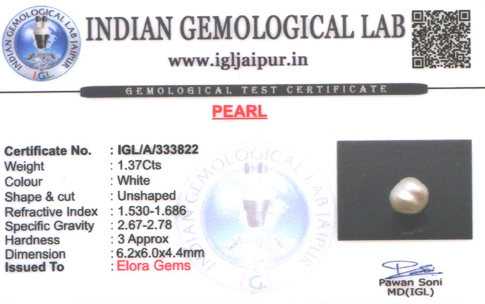 Natural Pearl (Muthu) weighing 1.37 carats In Unshaped