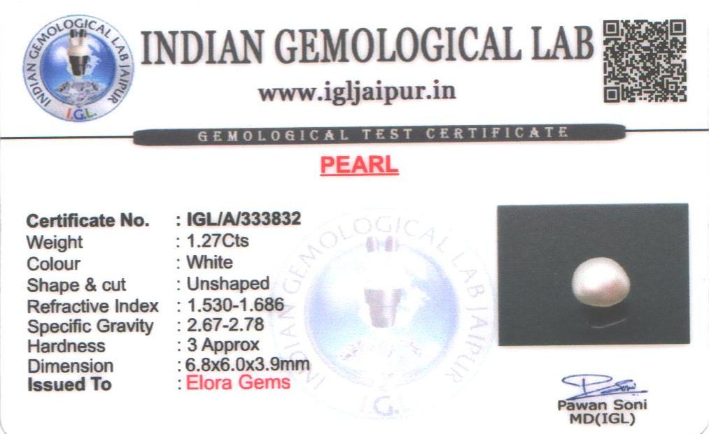 Natural Pearl (Muthu) weighing 1.27 carats In Unshaped