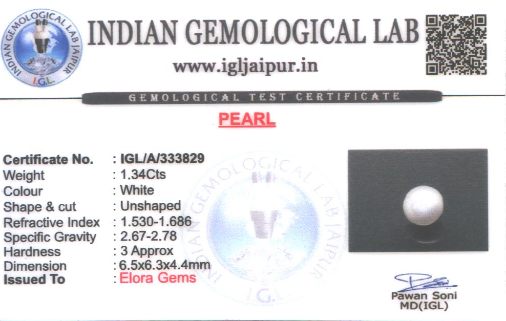 Natural Pearl (Muthu) weighing 1.34 carats In Unshaped
