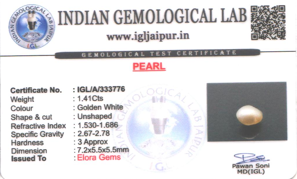 Natural Pearl (Muthu) weighing 1.41 carats In Unshaped