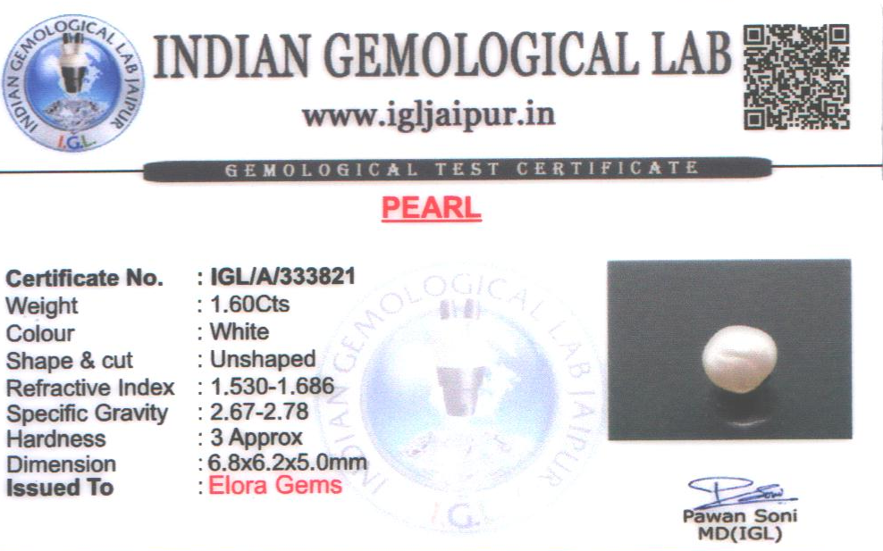 Natural Pearl (Muthu) weighing 1.6 carats In Unshaped