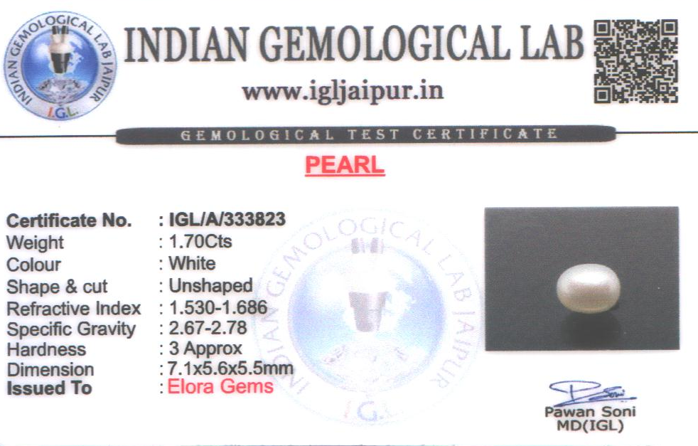 Natural Pearl (Muthu) weighing 1.7 carats In Unshaped