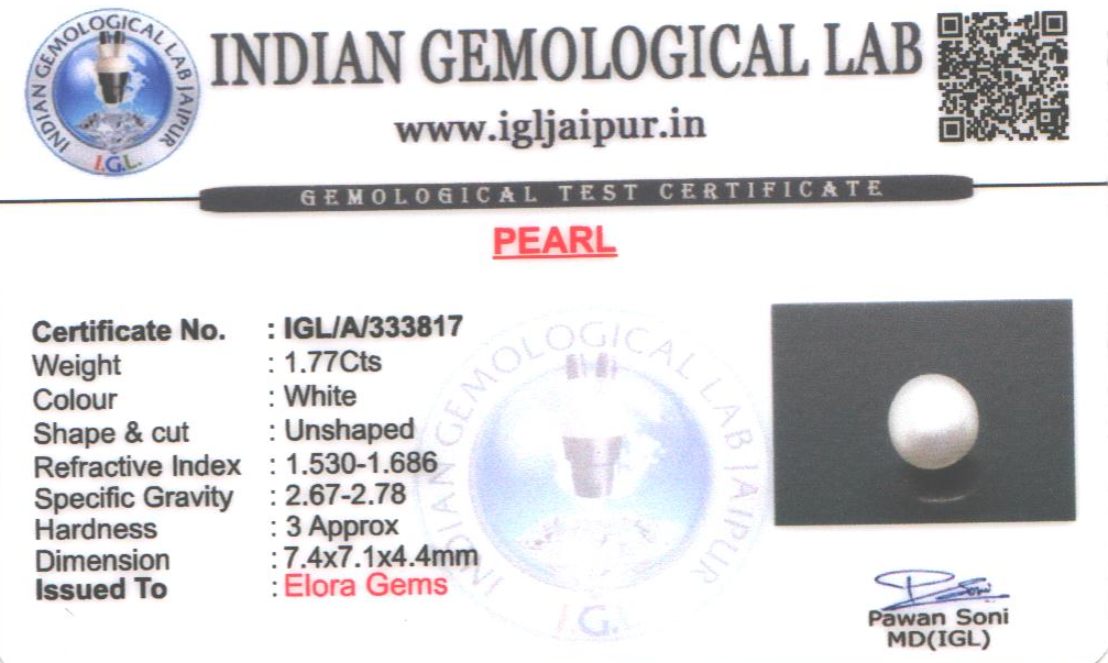 Natural Pearl (Muthu) weighing 1.77 carats In Unshaped