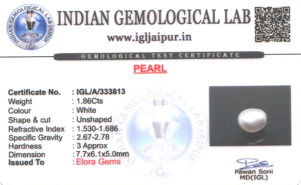 Natural Pearl (Muthu) weighing 1.86 carats In Unshaped