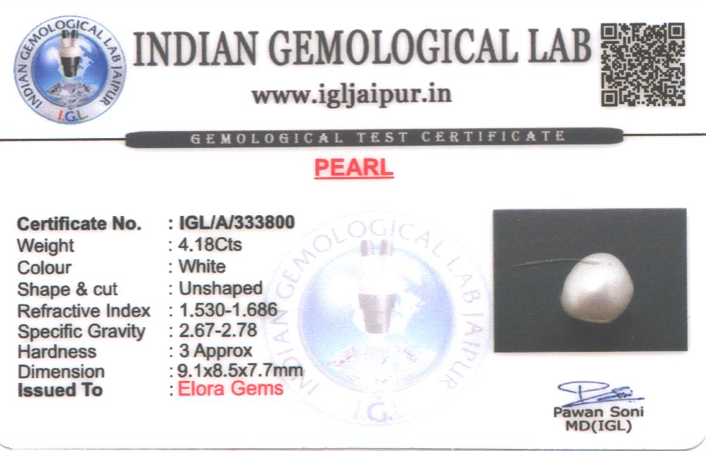 Natural Pearl (Muthu) weighing 4.18 carats In Unshaped