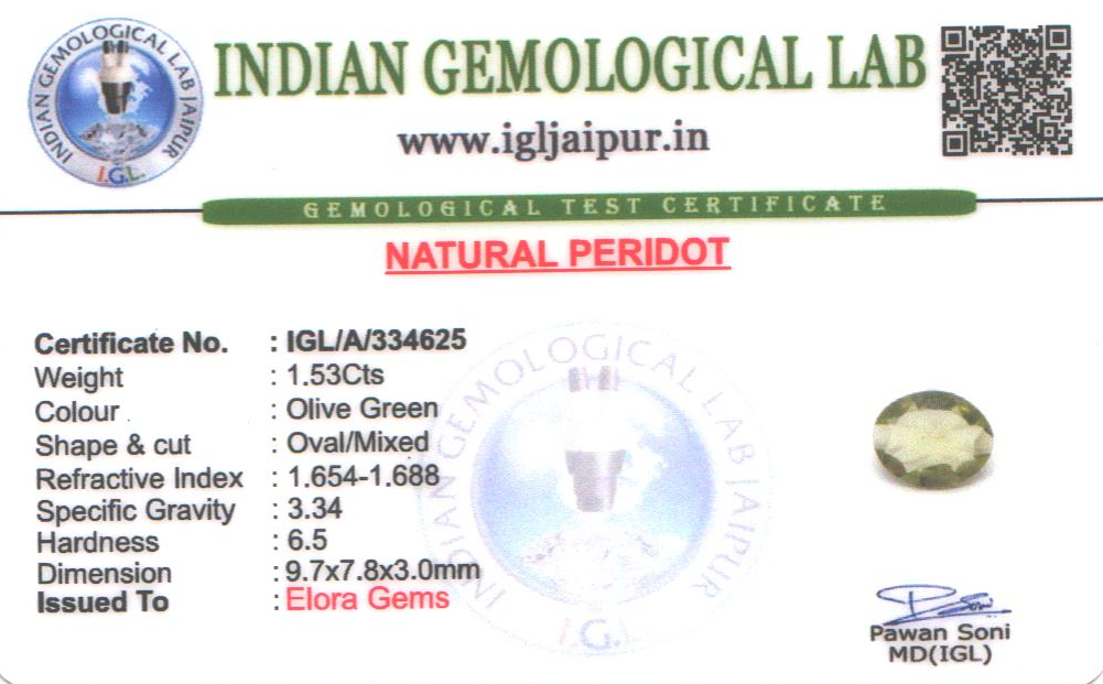 Natural Peridot weighing 1.53 carats In Oval