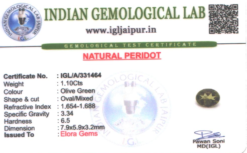 Natural Peridot weighing 1.1 carats In Oval