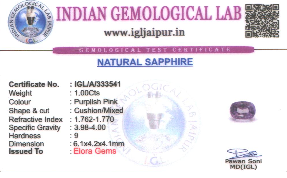 Natural Pink Sapphire weighing 1 carats In Cushion from Sri Lanka (Ceylon)