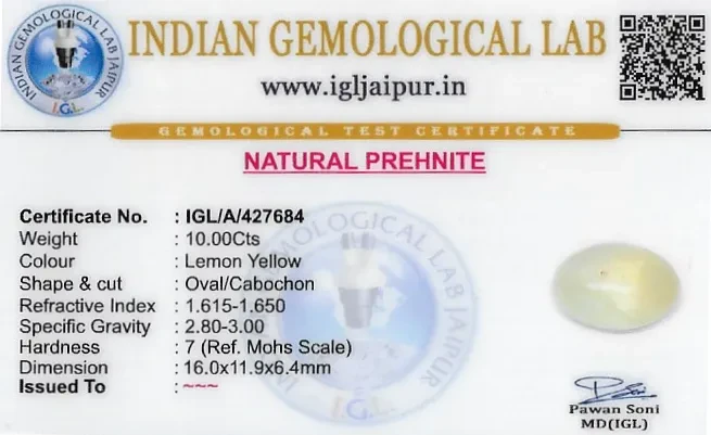 Prehnite 16x12 MM 10 carats