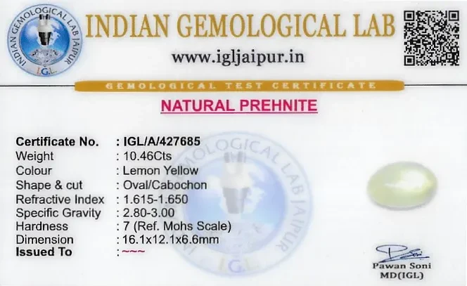 Natural Prehnite weighing 10.46 carats In Oval