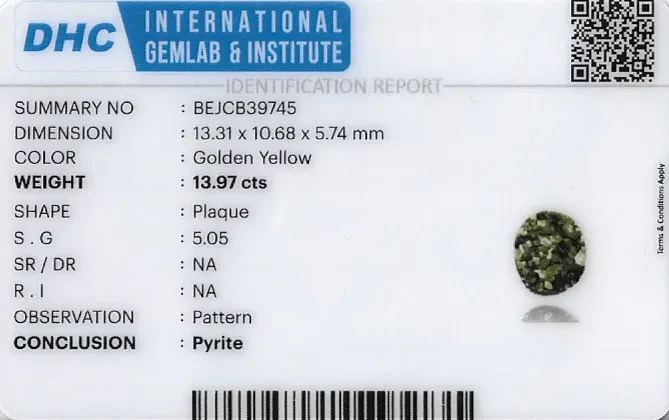 Natural Pyrite weighing 13.97 carats