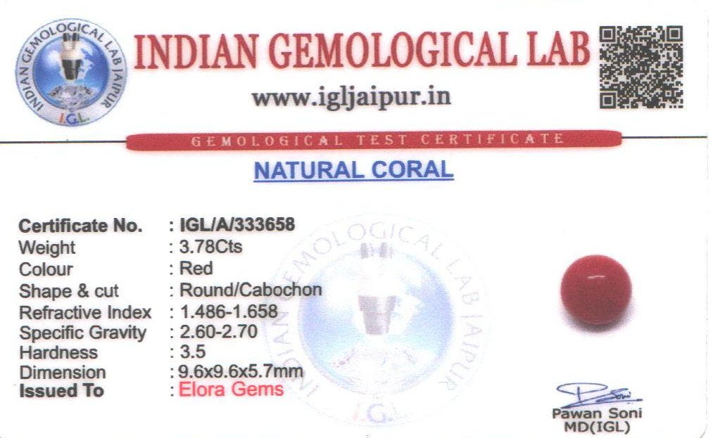 Natural Red Coral (Pavalam) weighing 3.78 carats In Round from Japan