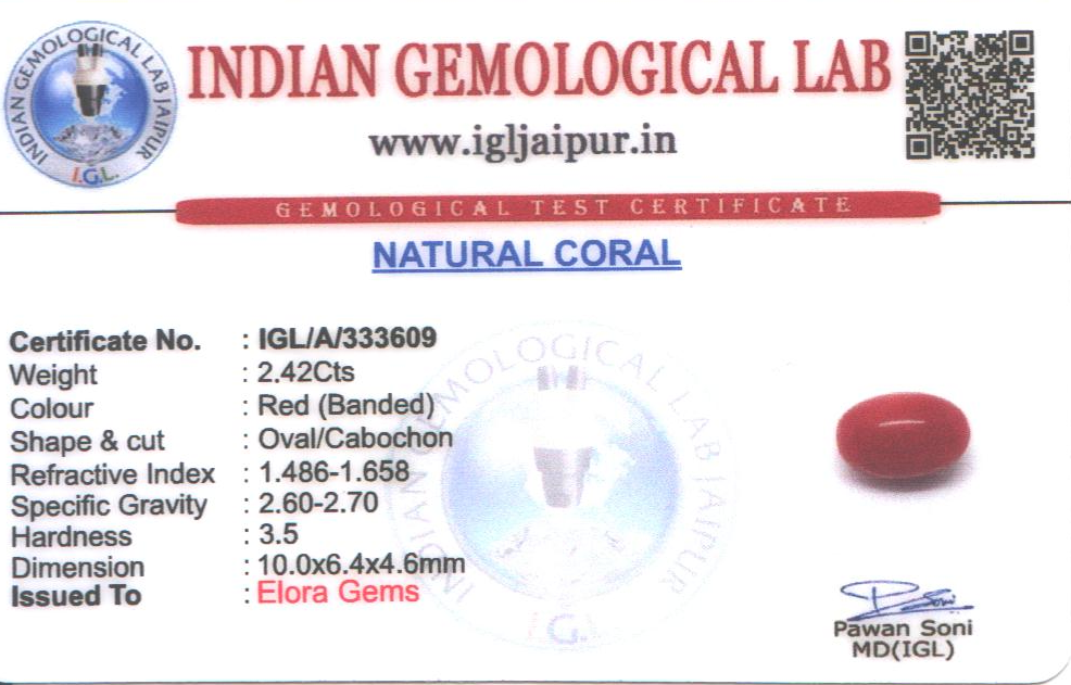Natural Red Coral (Pavalam) weighing 2.42 carats In Oval from Japan