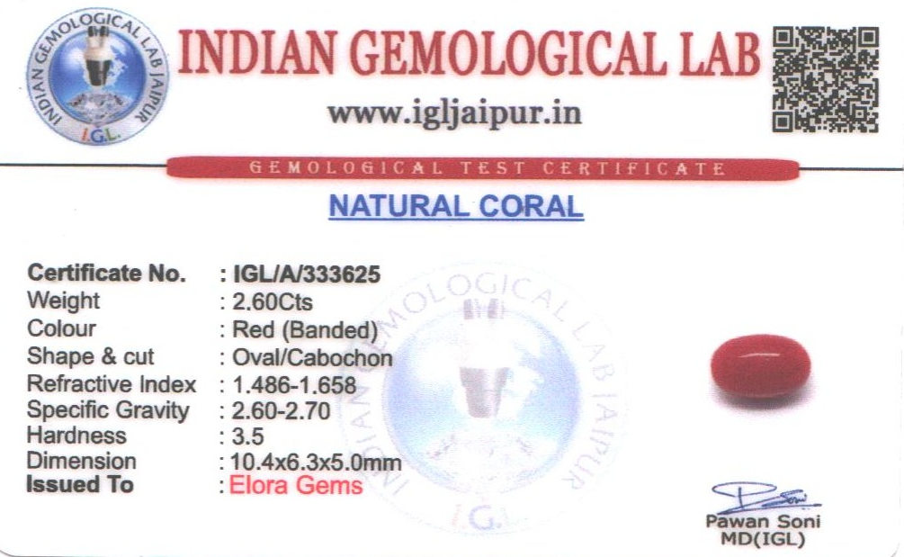 Natural Red Coral (Pavalam) weighing 2.6 carats In Oval from Japan