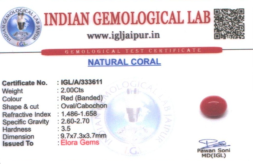 Natural Red Coral (Pavalam) weighing 2 carats In Oval from Japan