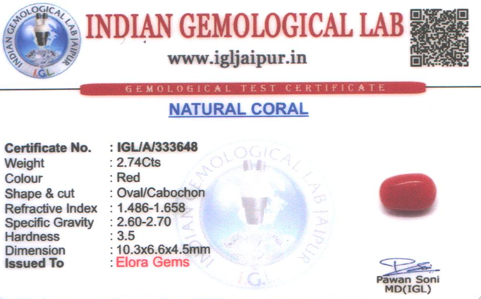 Natural Red Coral (Pavalam) weighing 2.74 carats In Oval from Italy