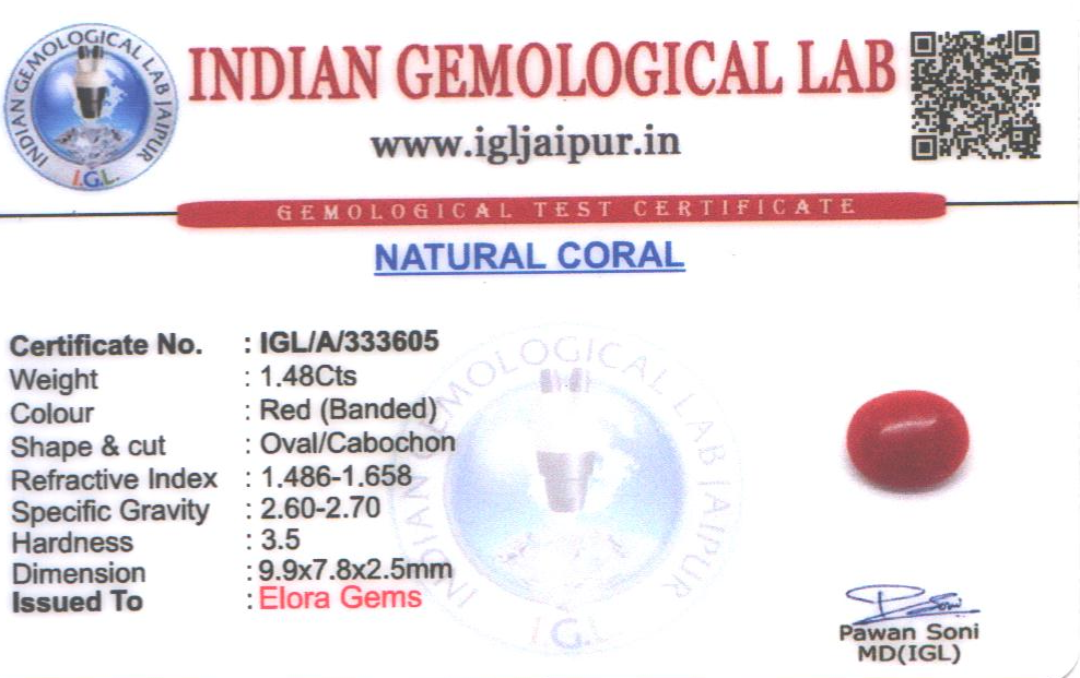 Natural Red Coral (Pavalam) weighing 1.48 carats In Oval from Japan