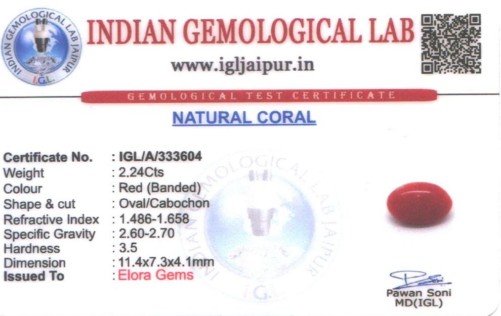 Natural Red Coral (Pavalam) weighing 2.24 carats In Oval from Japan