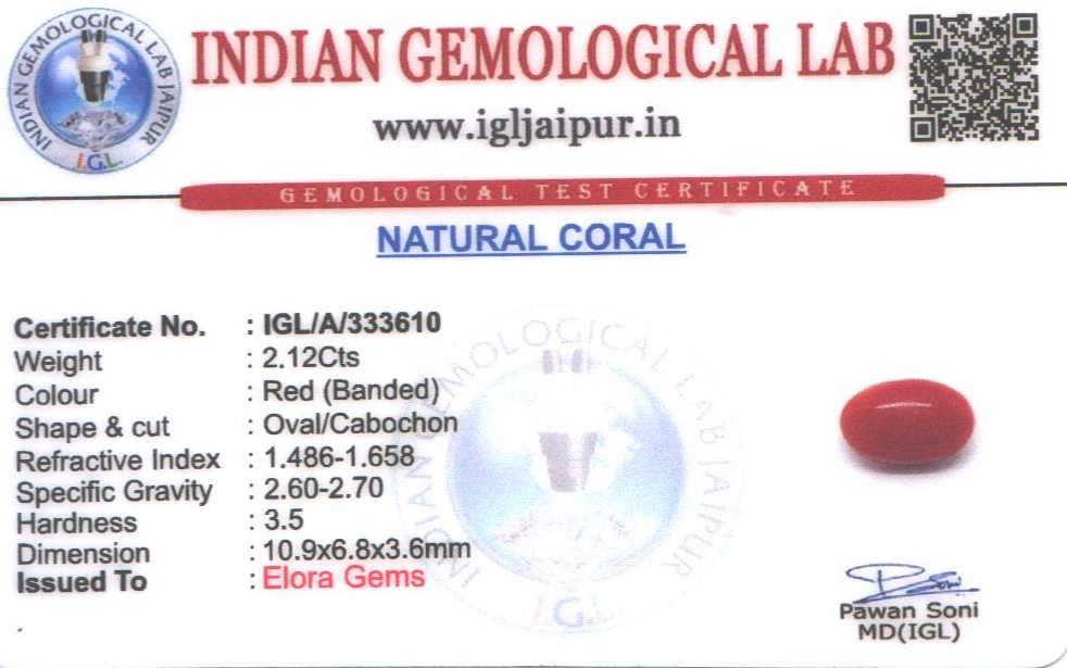 Natural Red Coral (Pavalam) weighing 2.12 carats In Oval from Japan