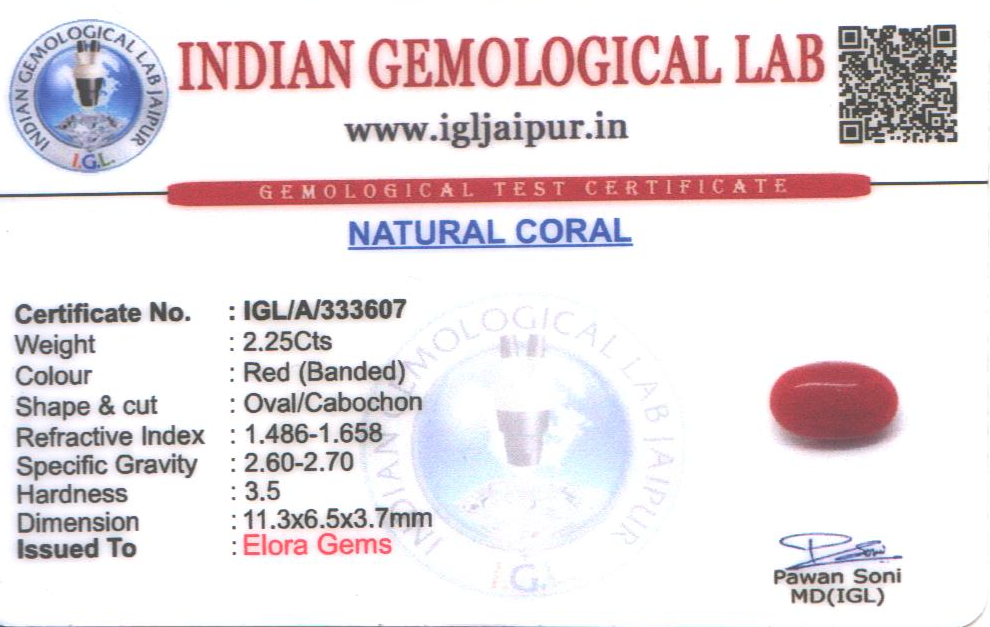Natural Red Coral (Pavalam) weighing 2.25 carats In Oval from Japan