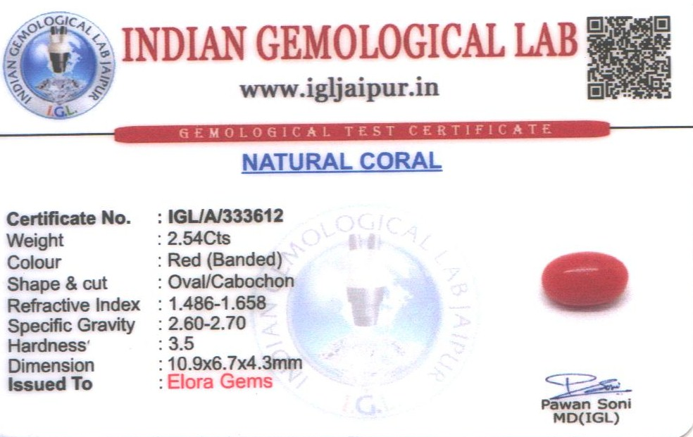 Natural Red Coral (Pavalam) weighing 2.54 carats In Oval from Japan