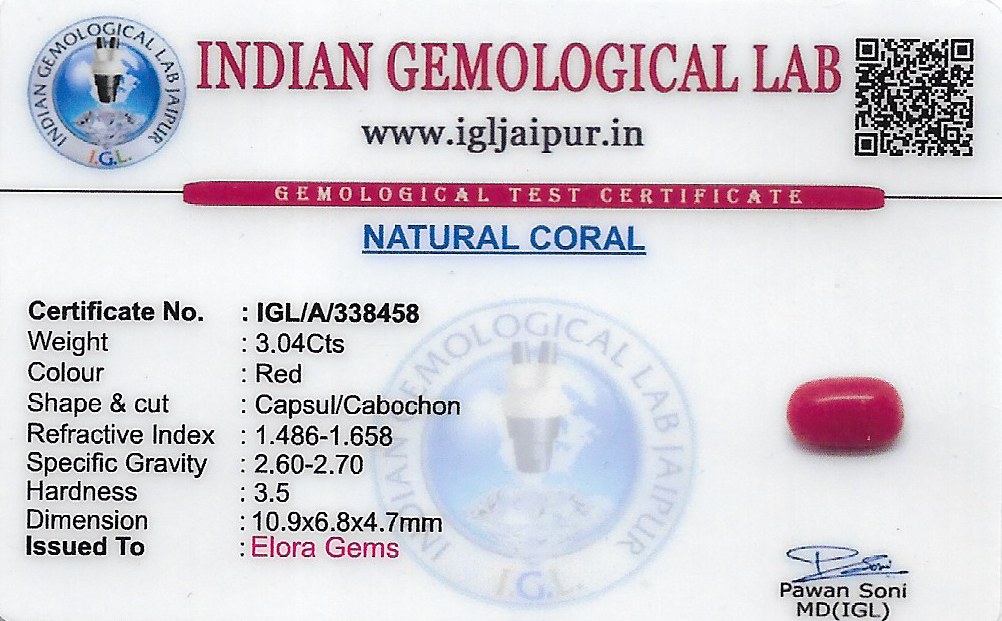 Natural Red Coral (Pavalam) weighing 3.04 carats In Capsule from Italy
