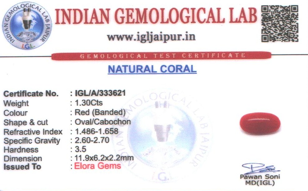 Natural Red Coral (Pavalam) weighing 1.3 carats In Oval from Japan