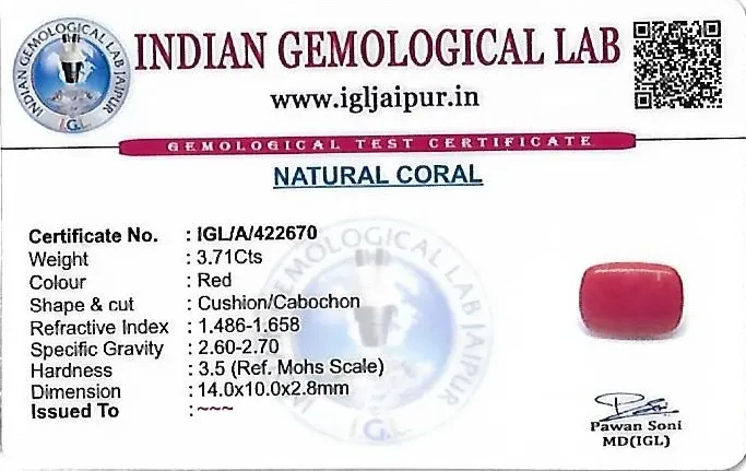 Natural Red Coral (Pavalam) weighing 3.71 carats