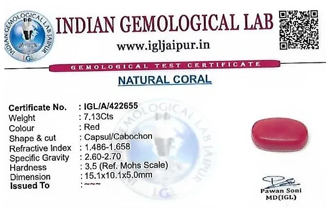 Natural Red Coral (Pavalam) weighing 7.13 carats In Oval from Italy