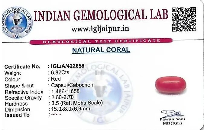 Natural Red Coral (Pavalam) weighing 6.82 carats from Italy