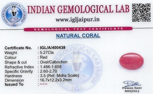 Natural Red Coral (Pavalam) weighing 5.27 carats In Oval from Japan